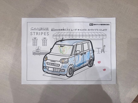 また、納車説明中にお嬢様が塗り絵をしてくれていたのですが、塗り絵のキャンバスの中にも